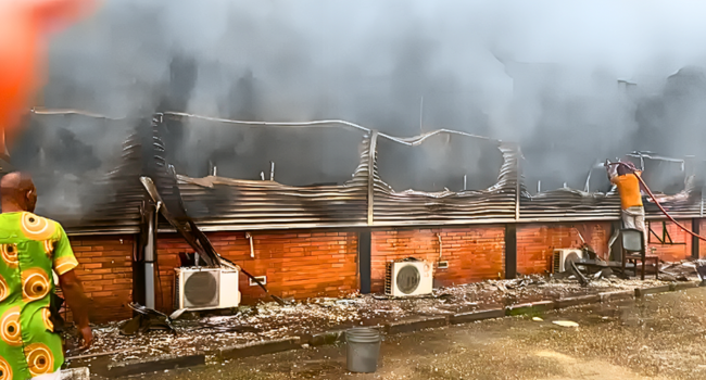 A fire outbreak on Monday evening destroyed parts of the Podium Block at the Rivers State Secretariat Complex in Port Harcourt, affecting the section housing the State Pension Board.