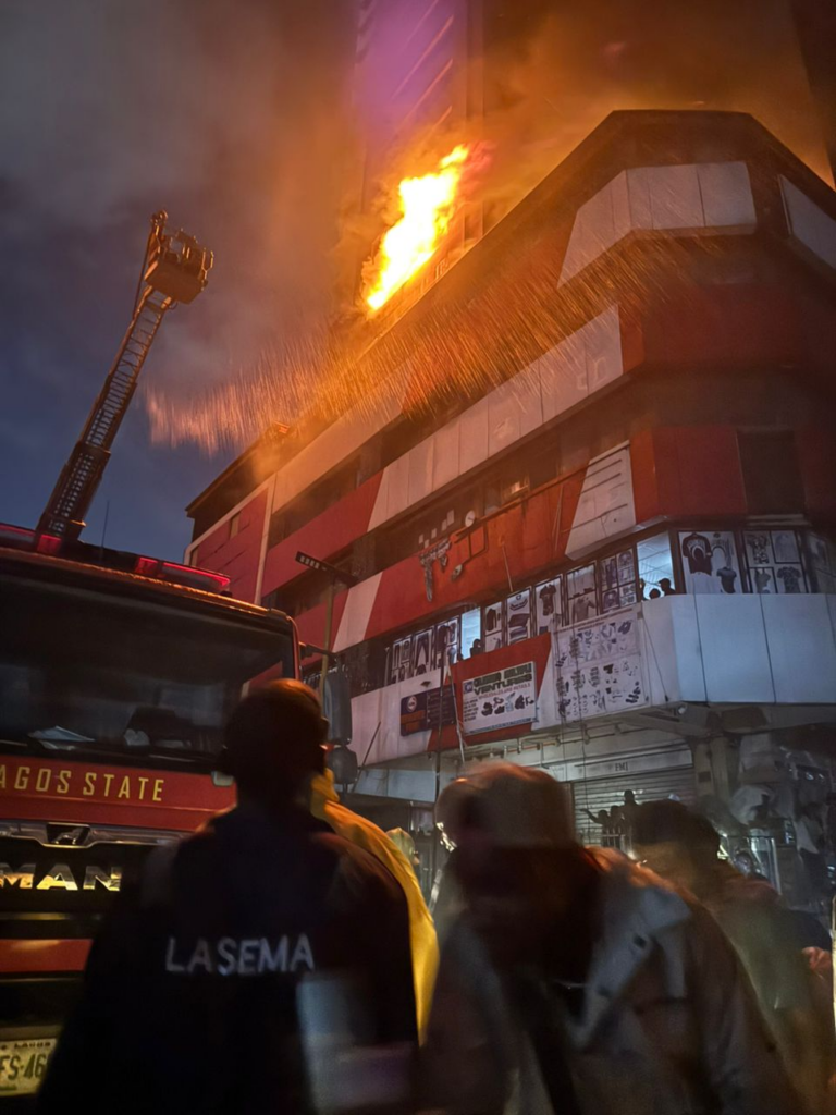 A 22-storey building, Great Nigeria Insurance House, located on Martins Street, Lagos Island, has been engulfed by fire.